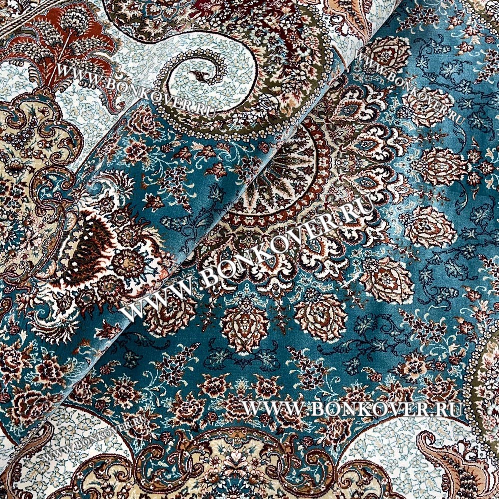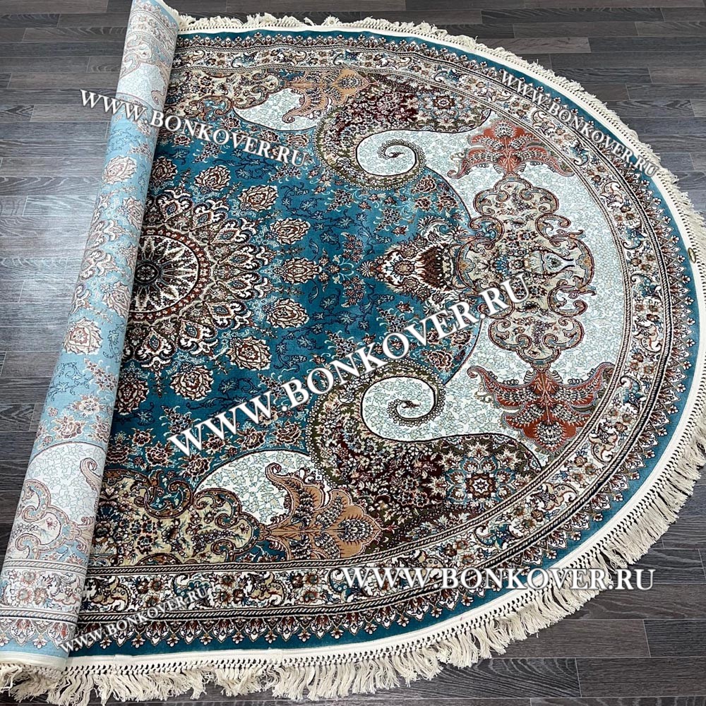 Красивый Иранский ковер дизайн 22 Синий Овальный наполняет интерьер вашего дома теплом и уютом, гармонично сочетает в себе изящество и стиль. Он выполнен из экологически чистого сырья, прочный и долговечный.