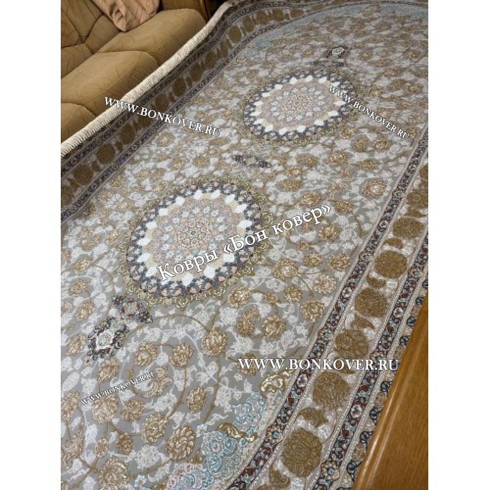 Элегантный Иранский Овальный Ковер Для Гостиной Арт 30246 наполняет интерьер квартиры теплом и уютом, гармонично сочетает в себе изящество и красоту. Он соткан из износостойких материалов, комфортный и долговечный.