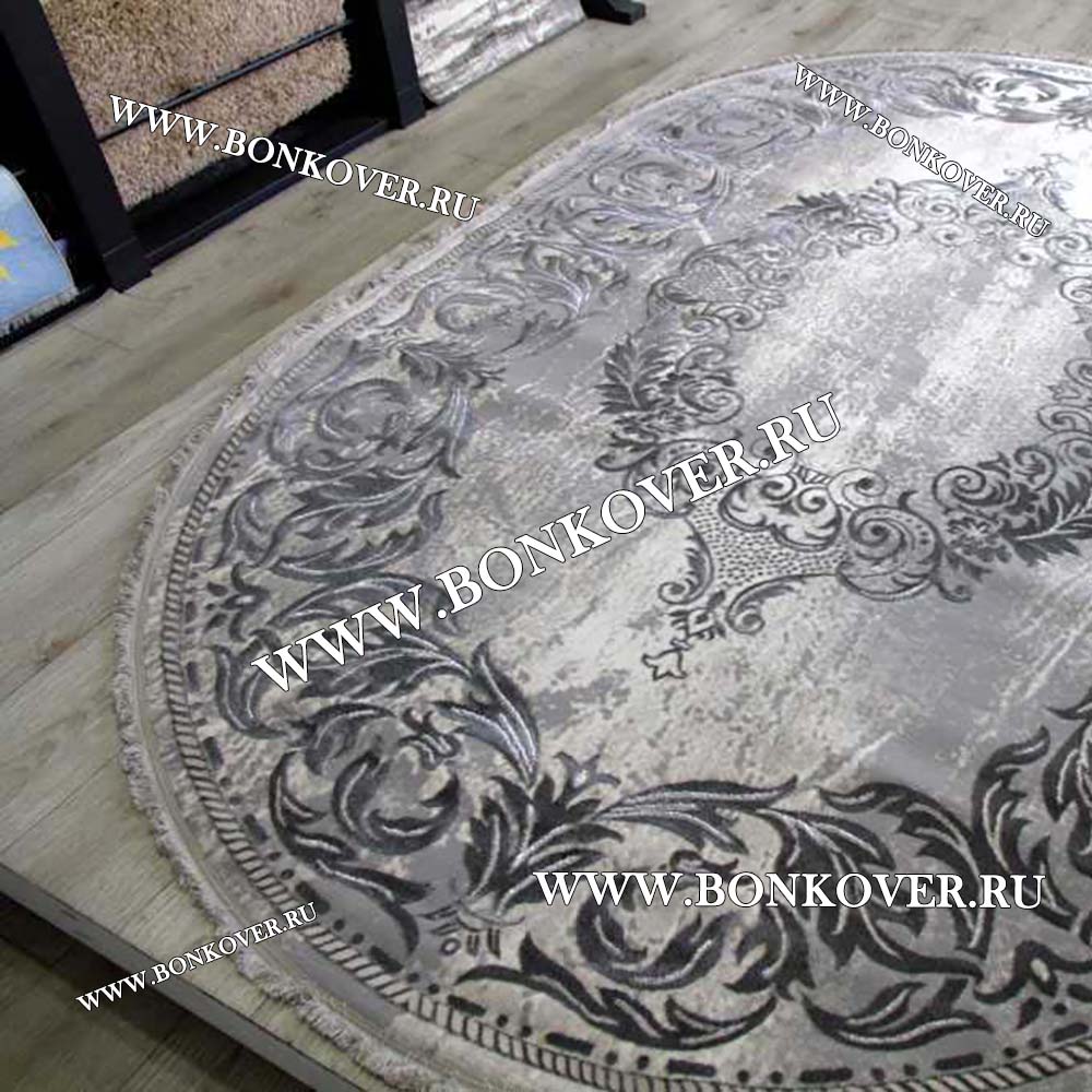 Изящный Ковер Турция Для Гостиной Дизайн 95 Серый Овал наполняет интерьер помещения теплом и уютом, гармонично сочетает в себе изящество и стиль. Он выполнен из экологически чистого сырья, комфортный и долговечный.