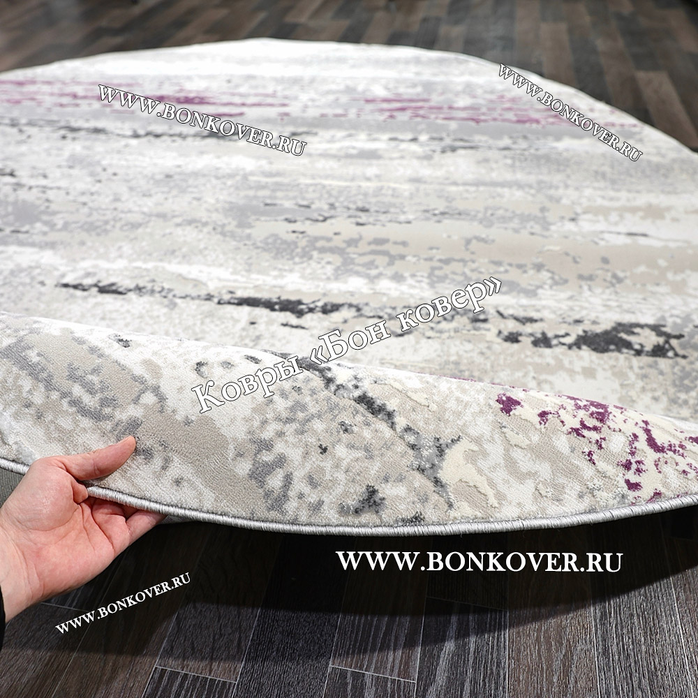 Красивый Круглый Ковер Для Гостиной Сиреневый С Серым Дизайн 30451 наполняет интерьер вашего дома теплом и уютом, гармонично сочетает в себе изящество и стиль. Он соткан из высококачественных материалов, прочный и долговечный.
