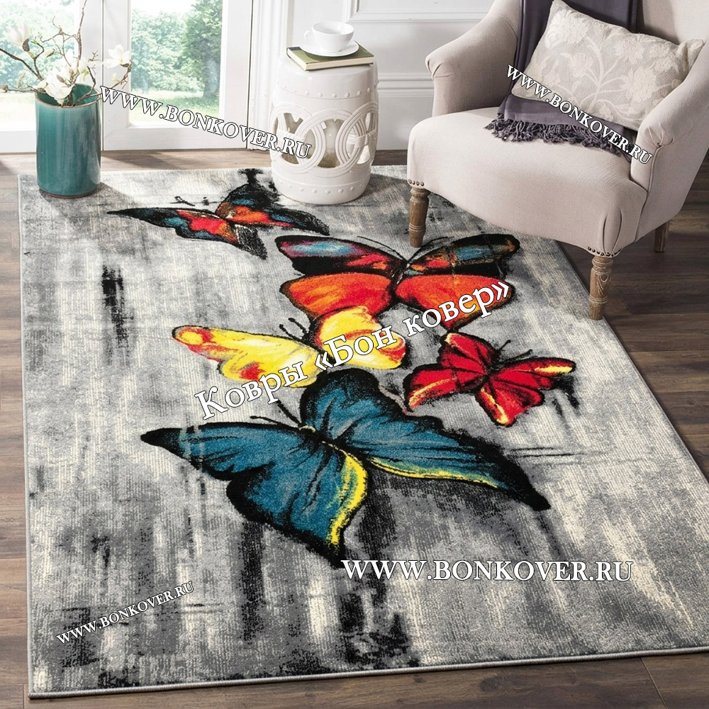 Элегантный Современный Ковер С Бабочками наполняет интерьер гостиной теплом и уютом, гармонично сочетает в себе изящество и красоту. Он создан из высококачественного сырья, комфортный и долговечный.