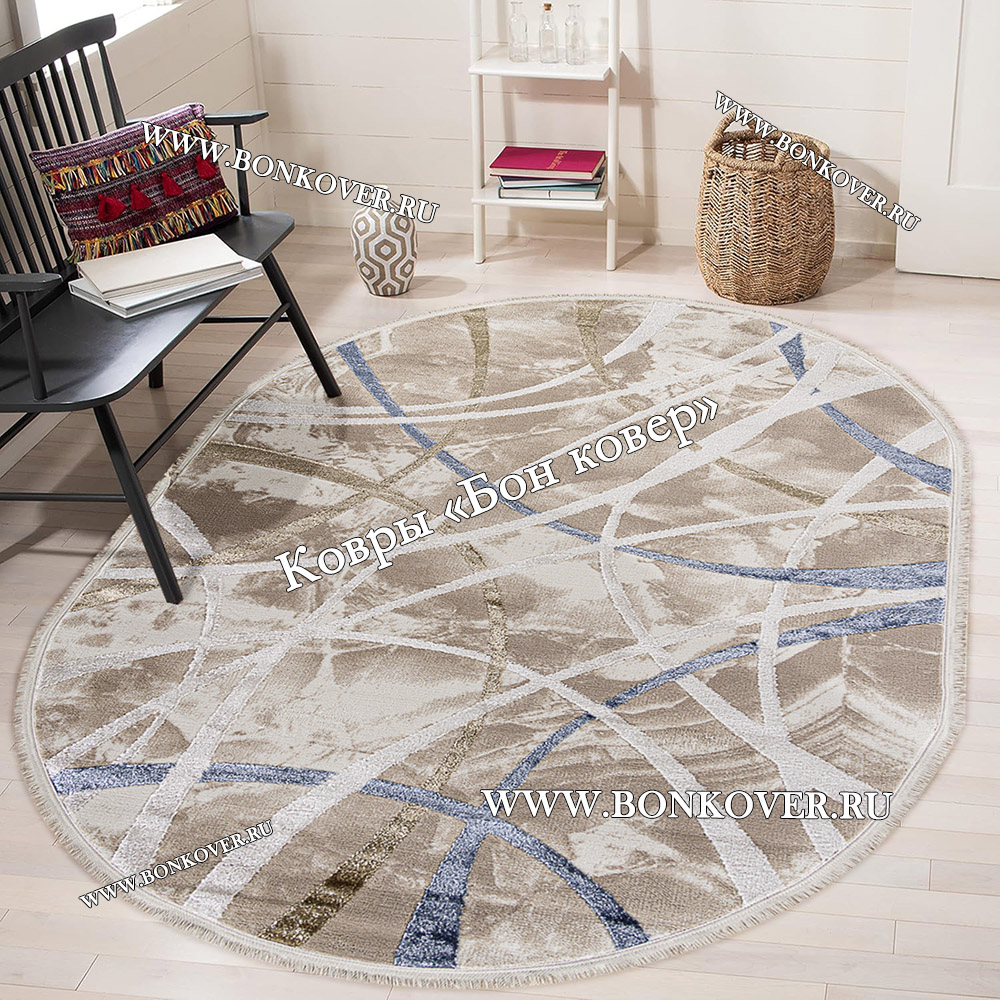 Красивый Турецкий Ковер Для Гостиной Абстракция Дизайн 09 Овал наполняет интерьер жилого пространства теплом и уютом, гармонично сочетает в себе изящество и стиль. Он изготовлен из современных материалов, прочный и долговечный.